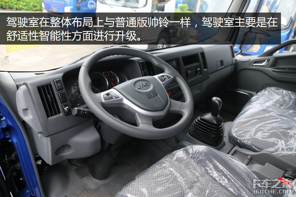 在舒适性方面,帅铃全能卡车进行了不少的升级优化,加入各种舒适性配置,采用更加符合人机工程学的座椅,都是为了给司机提供一个舒适的驾驶空间。