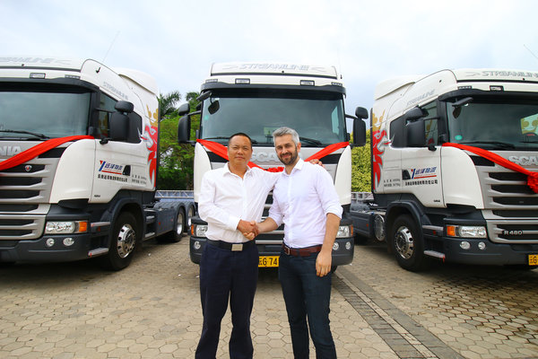 云南远泽物流有限公司2011年在云南红河开远市成立,经过短短6年时间,远泽物流的业务就已经遍及全国30余个地区,以及越南、老挝等东南亚国家。得益于“一带一路”,远泽物流利用自身区域优势,实现了更大的发展。预计明年将在澳大利亚正式上市,这或将是云南红河首家赴海外上市的物流公司。云南远泽物流有限公司董事长陈春祥先生说:“斯堪尼亚此次批量进入彩云之南,这也将对云南的高端进口车市场起到促进作用。而远泽物流投入跨境运输的斯堪尼亚也将在东南亚地区帮助公司树立高端的形象。”