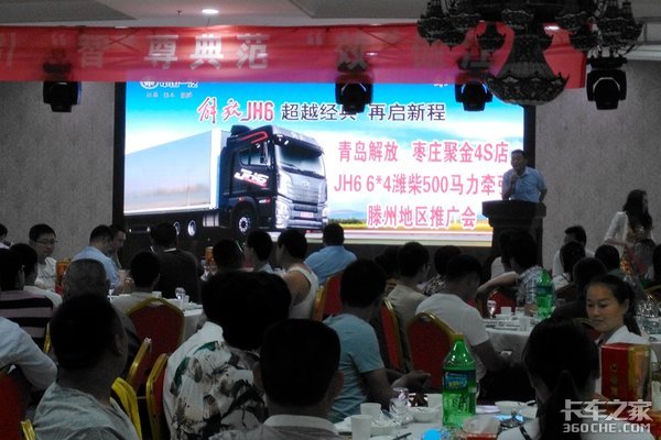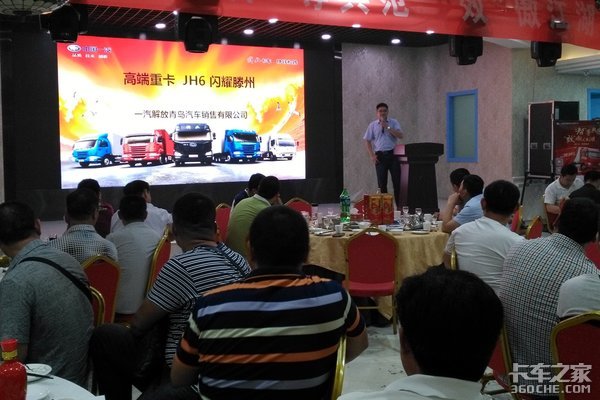 一汽青岛解放山东大区经理彭玉全先生、枣庄聚金4S店销售经理刘明先生、滕州滕鑫汽车销售公司胡嵩经理,及来自滕州地区及周边的用户朋友参加了本次会议。