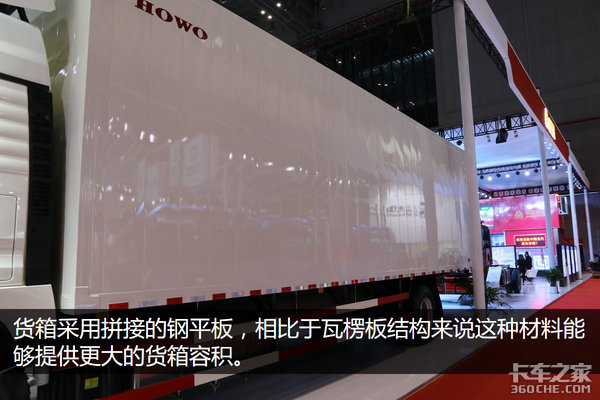 这台车的货箱材料为拼接的钢平板,相比于瓦楞板结构来说,这种材料能够提供更大的货箱容积——它的容积可达到66方。此外这种拼接结构的货箱在发生损坏之后,只需要把坏掉的几块板换掉即可,不会像瓦楞板一样换掉整块面板。
