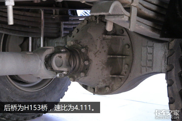 与之匹配的是重汽自家9挡变速箱,型号为HW13709XSTC,最高档为超速档,速比为0.725。搭配上速比为4.111的后桥,底盘总速比可以达到2.98。