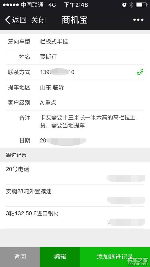而在我们挂车销售过程中,采用的基本是厂商业务员销售而非4S店模式,跟进记录基本就都靠个人自觉性了。可想而知真正能建立清晰的客户跟进记录是一件多不容易的事情,再加上采用传统笔和纸的方式,即使有记录,也不便于保存于查找工作。