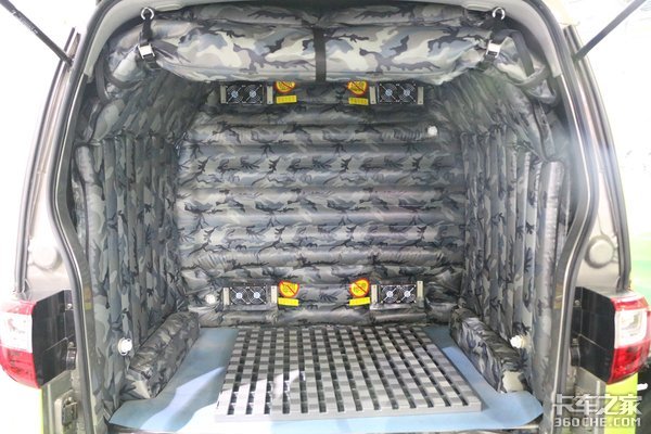 在冷链驿站周围几公里以内的货物,可以交给纯电动的VAN车型配送,康飞的这款纯电动车型也非常的有特点,在车子的后部装了一个空气保温层,充气以后就形成了一个保温箱,保温层随时都可以拆卸。一辆车既可以当成双温车也可以当成普通的VAN车型使用。