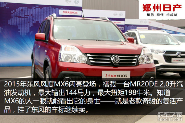 郑州日产共有NISSAN、东风两个品牌、三个汽车品类、六大车型,其中NISSAN品牌包括日产纳瓦拉、帕拉丁、NV200,东风品牌包括风度MX6、MX5、MX3、帅客、锐骐及多功能车型。