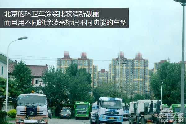 北京环卫采用不同的涂装来标识不同功能的车型。