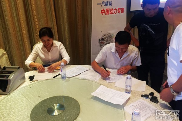 在活动中途就已经开始有客户按耐不住了,赶紧拉着现场的销售人员到一旁去,表示自己今天要订车,说完直接掏出白花花的百元大钞来,活动才刚进行到二十多分钟就陆陆续续的有3位用户已经完成了订车合同,后来又有多位用户订了车,短短一个多小时就成交60余台,足以看出成都用户对于搭载锡柴6DM3大马力发动机车型的喜爱。