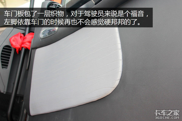 对于长途驾驶的司机来说,都有一个把左脚靠在车门板上的习惯,而传统的车辆门板都是硬邦邦的塑料,但联合在车门上包了织物,在使用体验上肯定是优于硬塑料的。