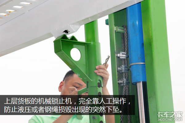 机械锁止有个好处,就是需要人工去解除,那么也就是极大的降低了误操作的几率,避免对人员或者货物的损坏,这点考虑得十分周全。