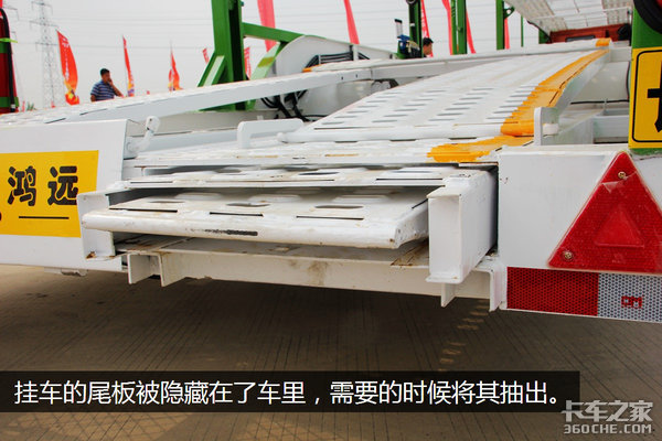 在新规定中明确说明了中置轴挂车的长度不超12米,所以中置轴轿运车就需要把尾板部分“藏”进车内,而且挂车也是个充分发挥装载方式的地方。