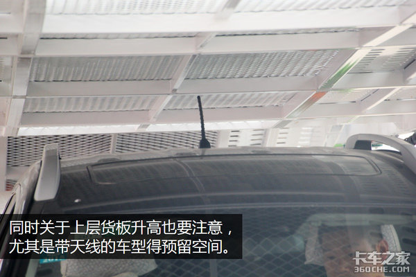 还有就是装载下层货板的时候,一定要注意上层货板的高度升降,尤其是对于与带有天线的商品车一定得预留位置,否则很容易出现损毁。