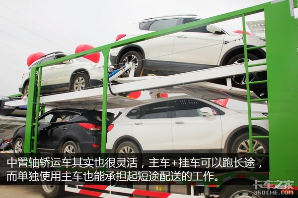 灵活性其实也是中置轴轿运车的特点之一,当挂车与头车组合在一起的时候它可以承担起长途的运输任务,而脱离中置轴挂车以后头车还能变成一台倒短车,可以说一台车就解决了客户长途+倒短的问题。