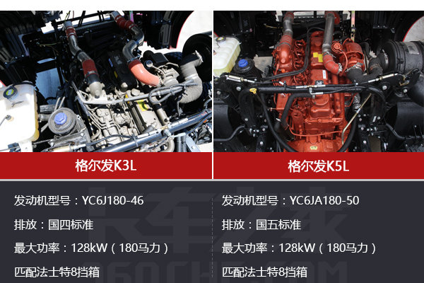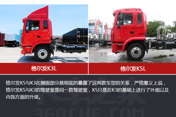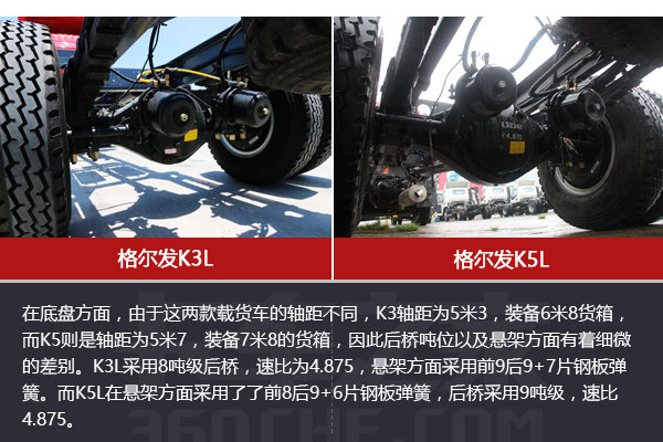 底盘方面,由于当时实拍的格尔发K3是16年的车型,因此搭载的是国四的发动机,动力部分就不作对比。而底盘以及动力的其他部分,由于这两款车型的定位是相同的,因此底盘的配置也没发生大的变化。