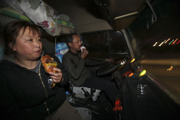 正因为如此,很多卡嫂看不下去自己的丈夫吃得不好,也坐上车陪着卡车司机在外面奔波,同时为他们打点生活。