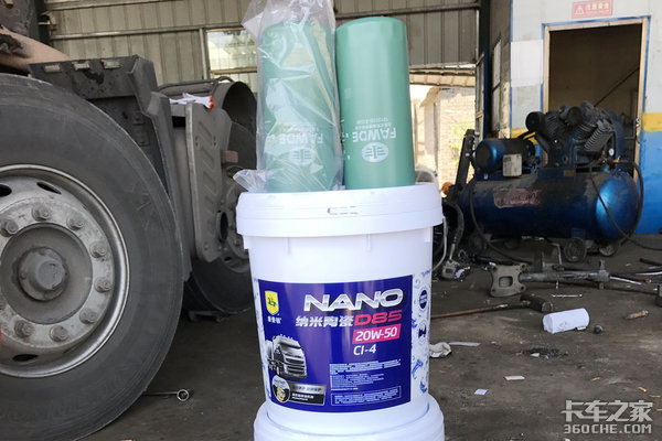 服务站的工作人员根据严师傅的车况,为他推荐了20W-50的纳米陶瓷技术机油NANO-D85,级别为CI-4级别。含有全新升级配方的纳米陶瓷添加剂,最大的特点就是其强化的自修复功能,非常适合严师傅这种超长距离运输的车辆使用。