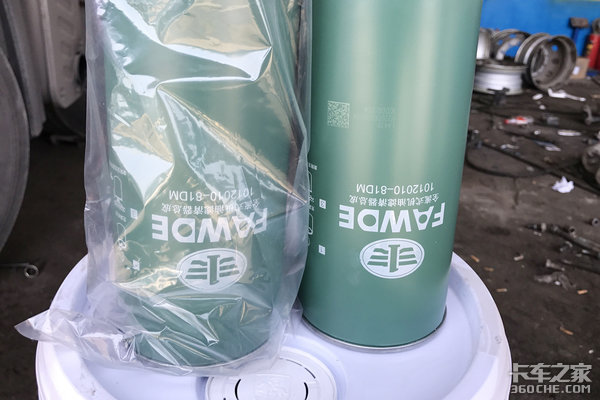 倒出发动机内的废机油后,在为车辆更换机油前,需要更换全新的机油滤清器,最大限度的避免机油滤清器中的旧机油流回发动机,以及滤芯中的杂质对新机油造成污染。严师傅说他之前用的机滤都是在汽配城买的小品牌产品,也不固定用哪个,这次康普顿服务站的维修人员给他换上了解放原厂的机滤。